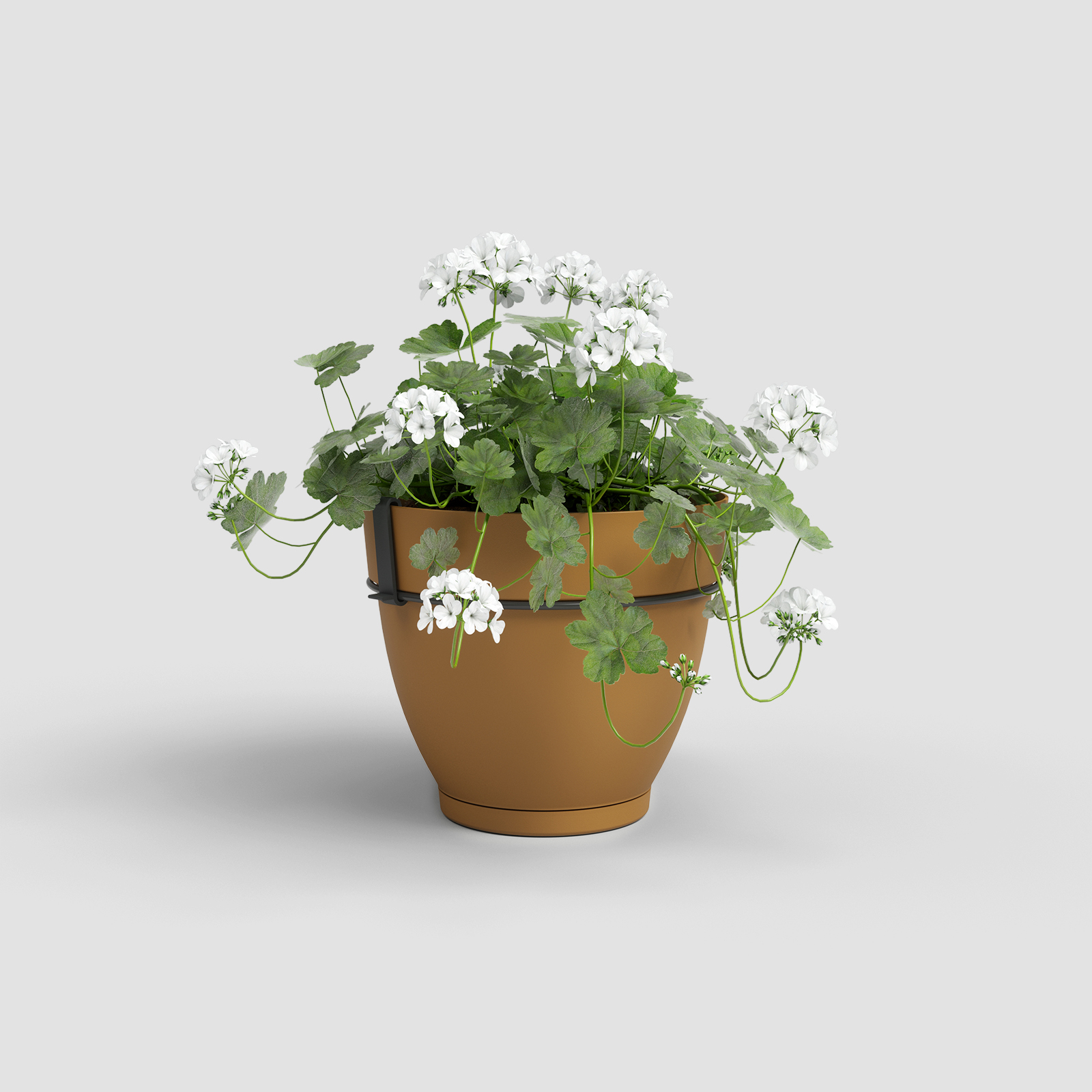 Recycled plastic wall pot kit, made from polypropylene, lightweight, durable, recyclable and reusable, with UV protection, frost-proof and with drainage holes. Includes iron bracket for use on the wall. Suitable for outdoor and indoor use, with a capacity of 3,4L. Made in Portugal.