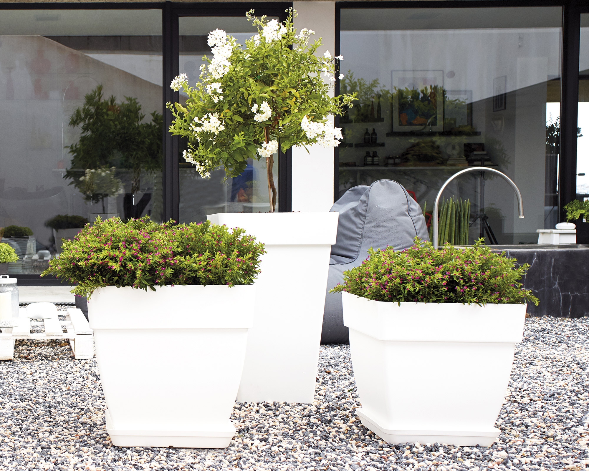 A classic that never goes out of fashion. Inspired by the natural beauty of the Italian island of Capri, this range recaptures the essence of the terracotta pots' shape, providing a perfect harmony between classic silhouettes and modern looks. The Capri range features various models and colours for all styles and contexts, from balcony and wall solutions to orchid pots and water reserve pots. It also offers various sizes, from pots for smaller plants to large and very large plants (pots up to 1 metre high). Produced using recycled material, the Capri range is a strong trend that is essential in any shop.