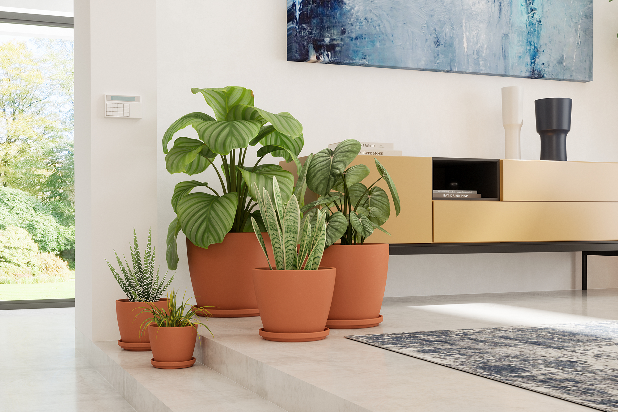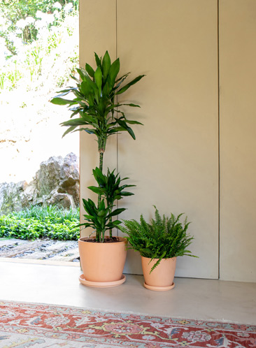 We developed our round and rectangular saucers as an ideal complement to our terracotta pots and plant box collection, offering versatility and functionality to any decorative context. Due to their waterproof finish, our saucers make it possible to use our entire collection indoors.